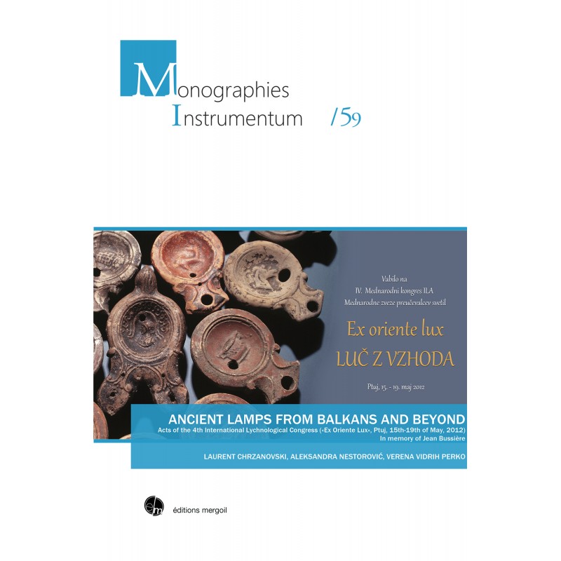 L. CHRZANOVSKI, A. NESTOROVIĆ, V. VIDRIH PERKO. MI-59. ANCIENT LAMPS FROM BALKANS AND BEYOND. Acts of the 4th International Lychnological Congress («Ex Oriente Lux», Ptuj, 15th-19th of May, 2012). In memory of Jean Bussière . 2019, 542 p., ill. coul. (ISBN : 978-2-35518-088-0). Collection dirigée par M. Feugère